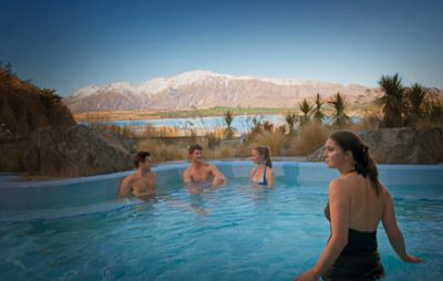 Hot pools frequently come with cool scenery in New Zealand. These spectacular pools at Tekapo are right alongside a winter ice skating rink, so you can skate and then soak. There is also a day spa on site, as well as a sauna, steam room and cold plunge pool.